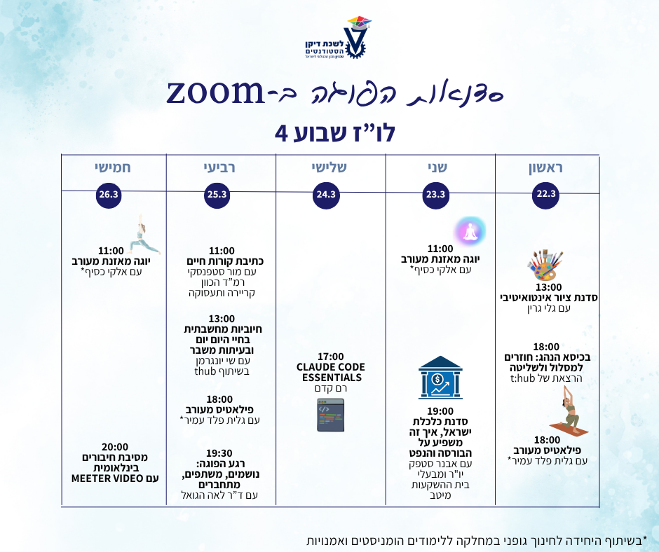 שבוע 4 – 22.3-26.3