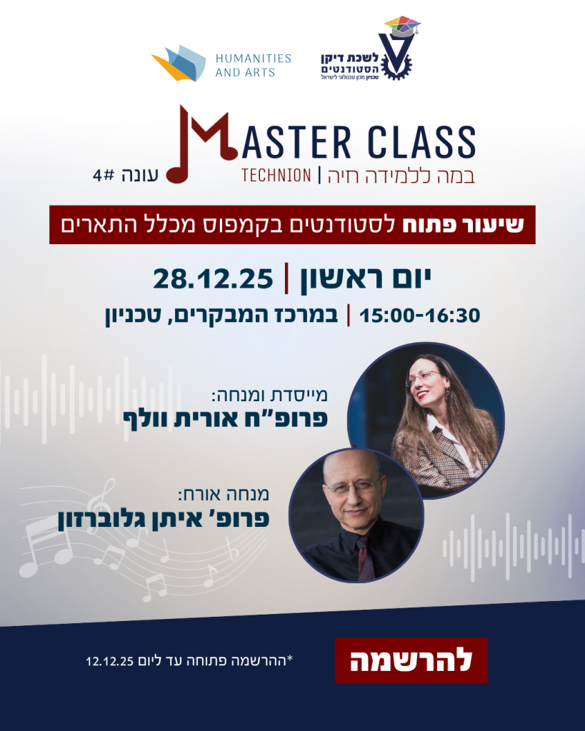 מידי שנה מתקיימים בטכניון כיתות אמן עם הפסנתרנית, פרופ"ח אורית וולף, פסנתרנית, מלחינה, יוצרת בינלאומית ואמנית בקמפוס בשנתה הראשונה של התכנית (2022-2023), מהמחלקה ללימודים הומינסטים ואמנויות.